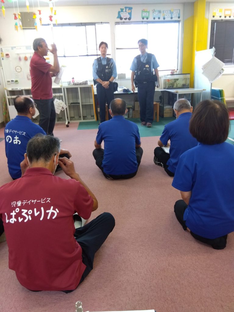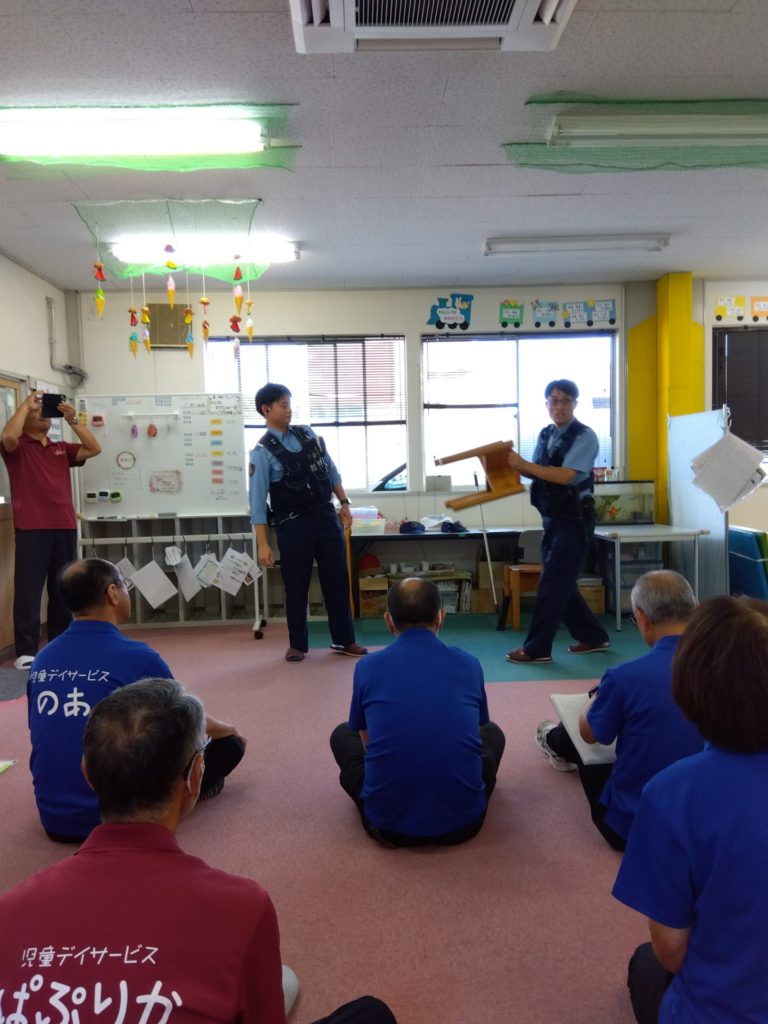 9月は防犯訓練ということで、初めてぱぷりかに1番近い『売市交番』の方2名においでいただき
