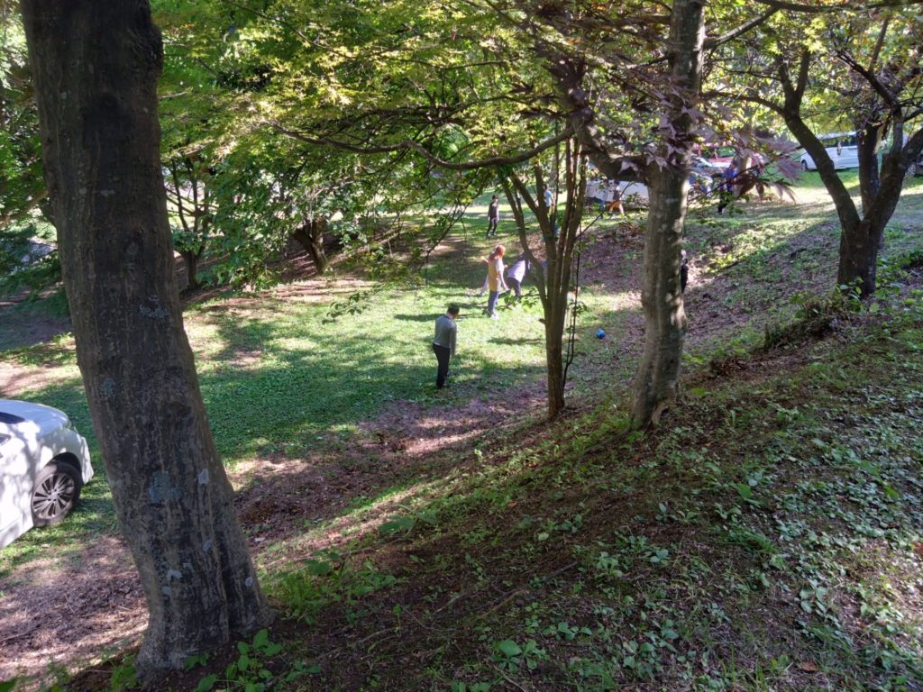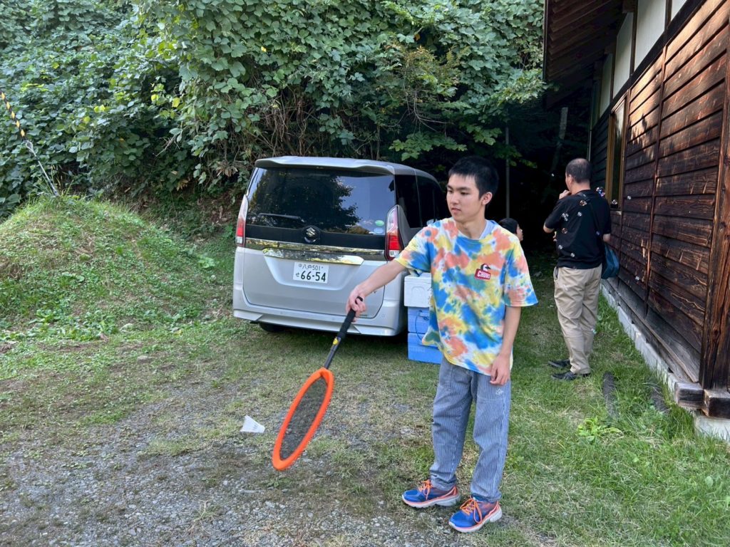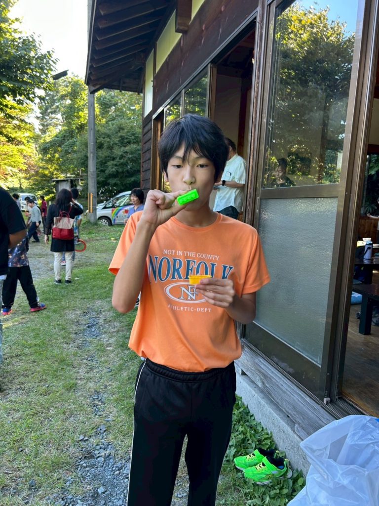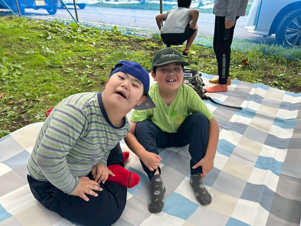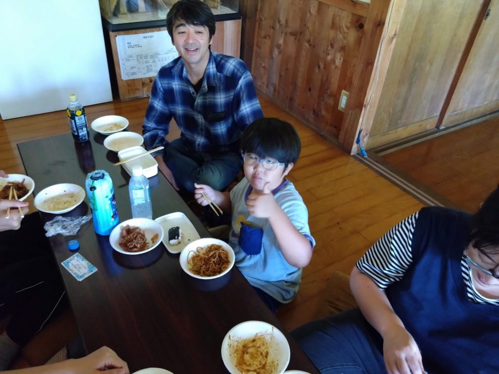 その後、昼食会場へ移動し、焼きそば、フランクフルト、焼き肉などでお腹を満たし、外でバドミントンやシャボン玉、虫取りやボール遊びもして楽しみました。