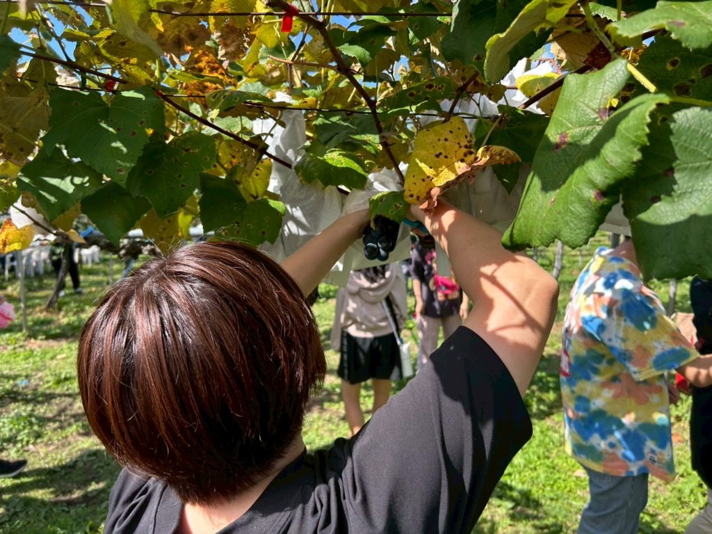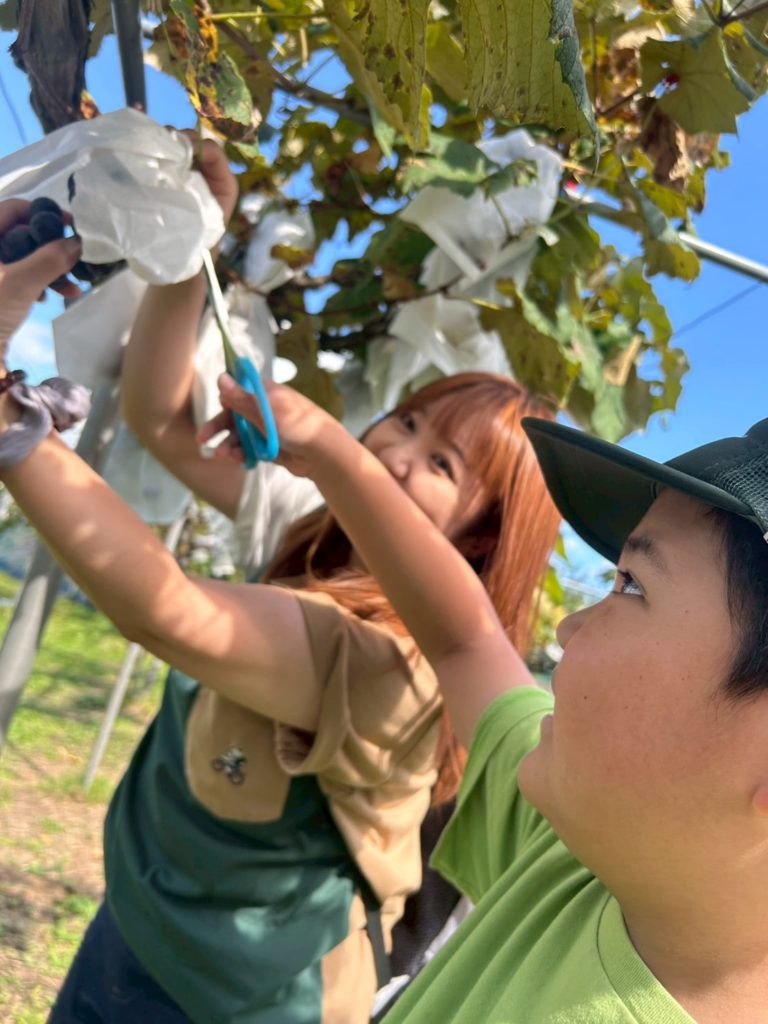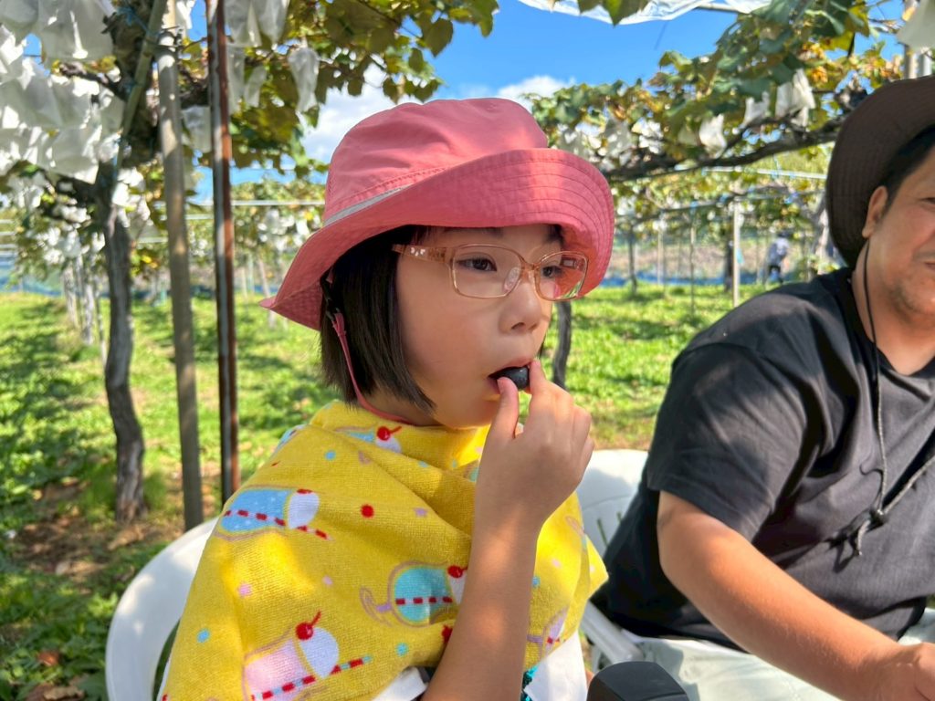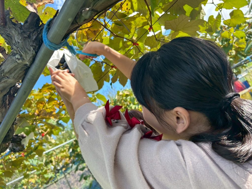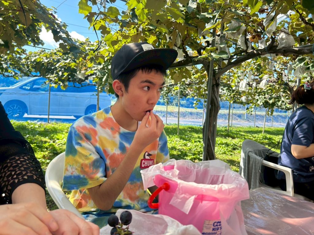 ぶどう狩りでは、好きなぶどうを1房ずつ「取っては食べ、取っては食べ」を繰り返し、舌鼓を打ちながらたくさんいただきました。