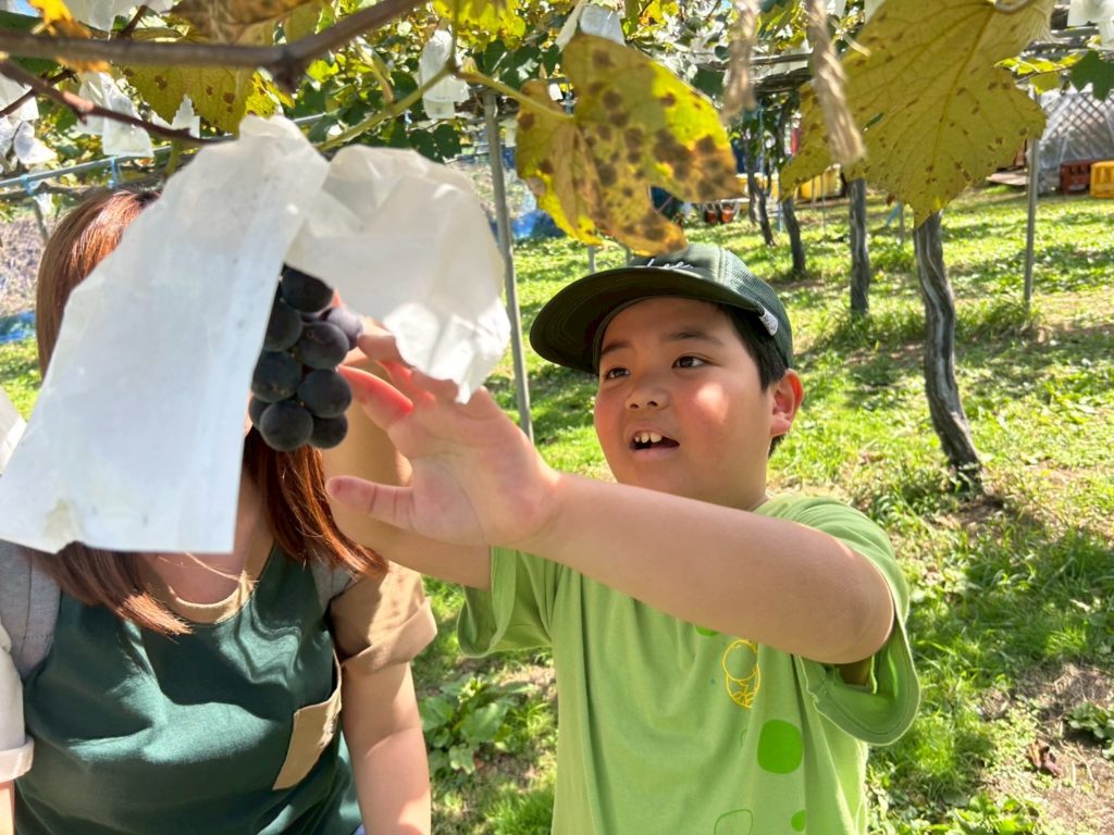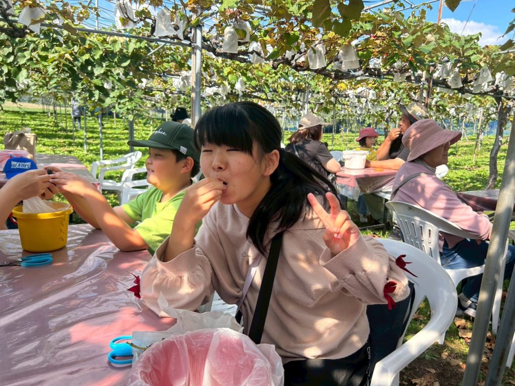 9月27日(土)、ぶどう狩りに名川町へ行ってきました。 家族とスタッフ合わせて70名以上の参加があり、天気にも恵まれて大盛況でした。