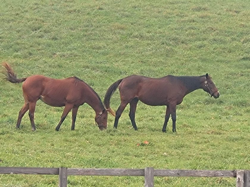 Sさんが通っている八戸高等支援学校のお隣には、タイヘイ牧場があり9月ごろから2頭の馬が姿を見せています。校舎側に駐車すると真正面に牧場の緑の芝生と仲良さそうな2頭の競走馬・・・🐎とても絵になります😊