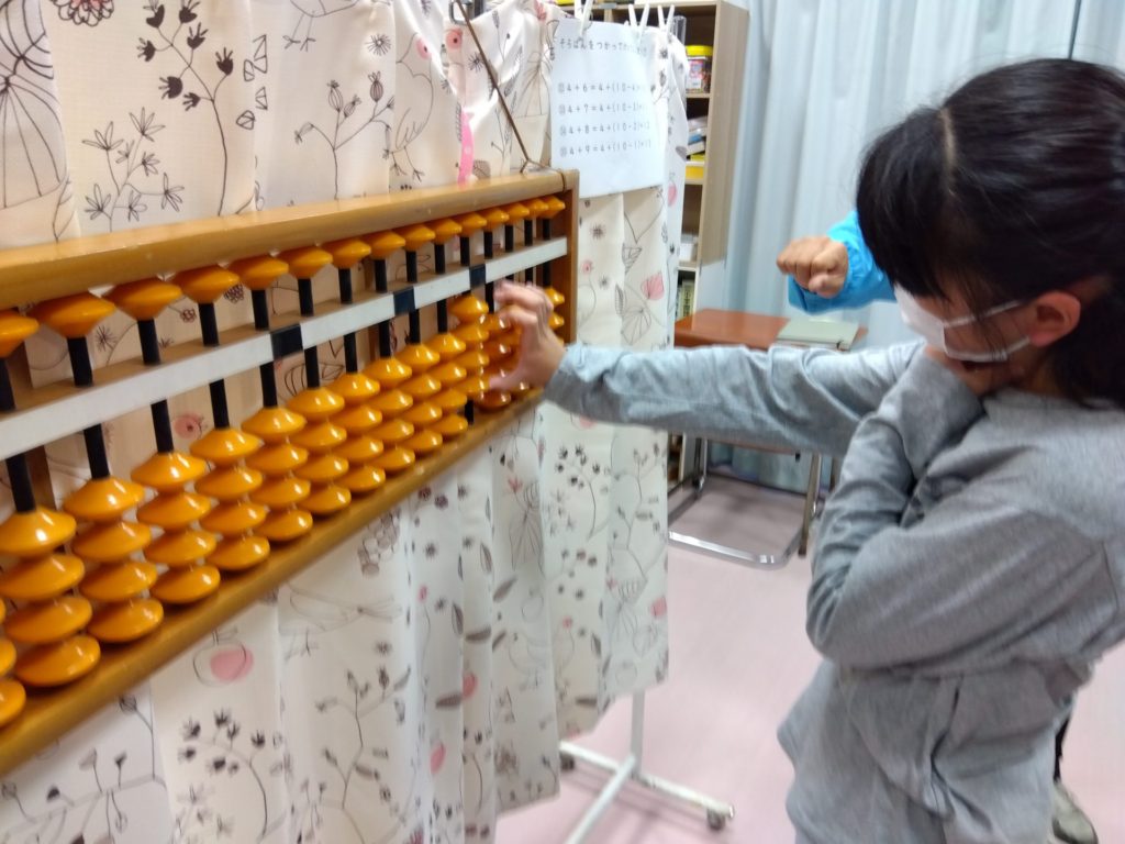 今回は初めてだったため、一桁+一桁だけの計算でしたが、次は二桁や三桁にも挑戦してみたいと思います。次回は、一人ずつそろばんを使って計算に挑戦します。