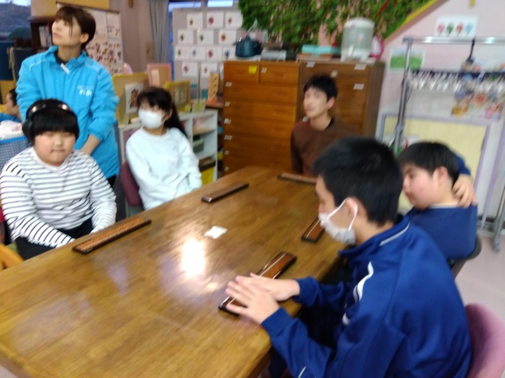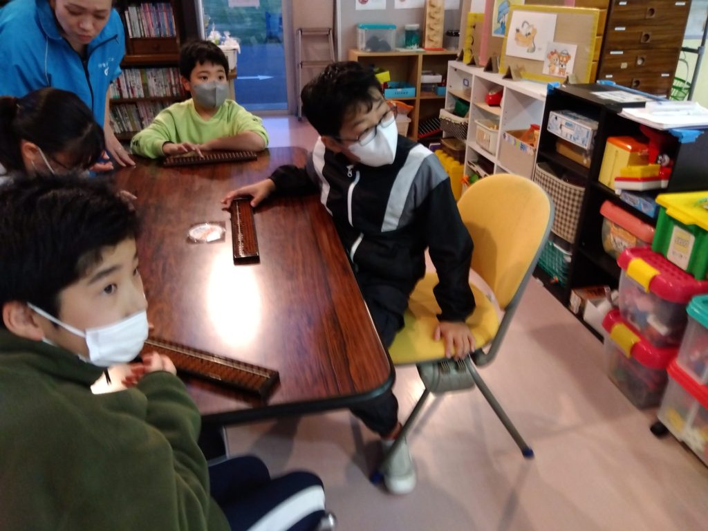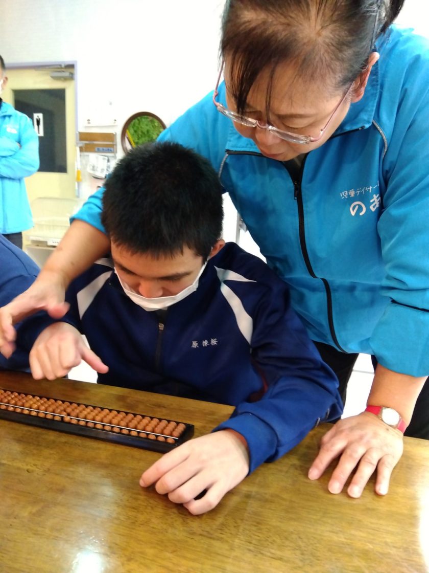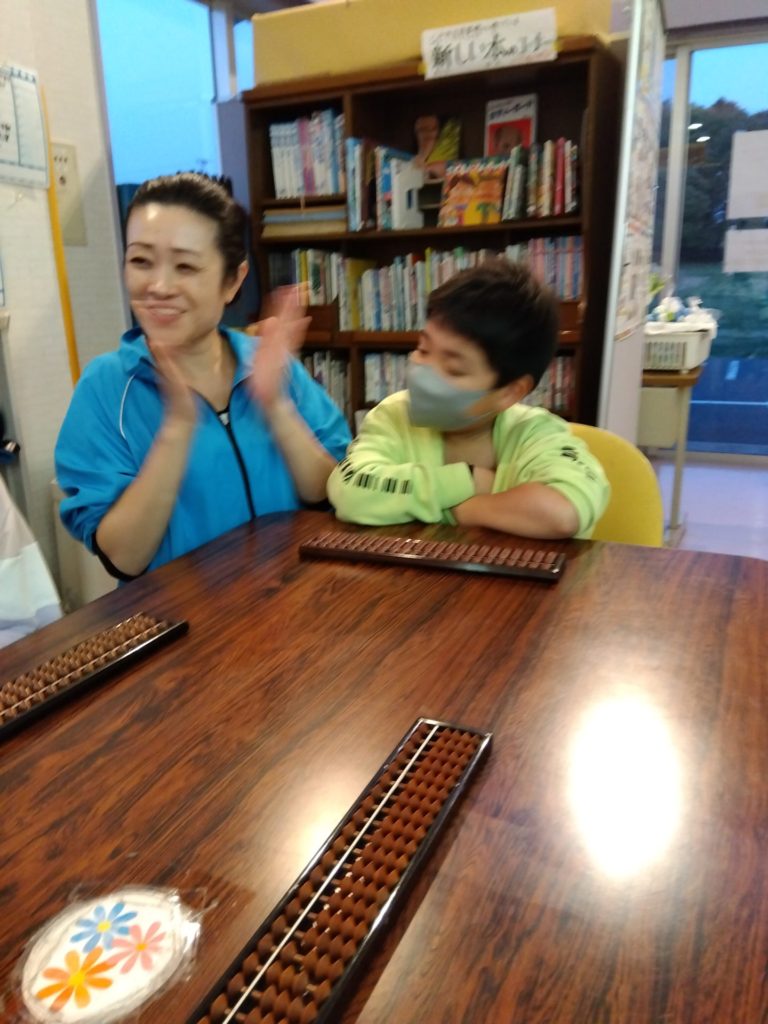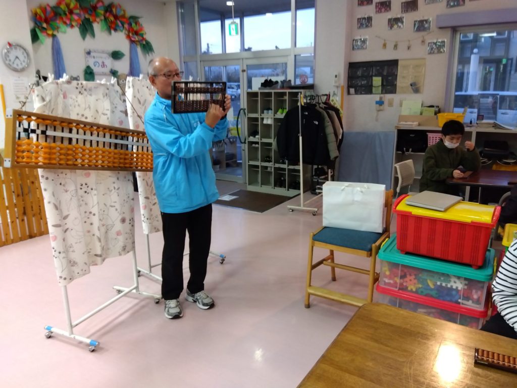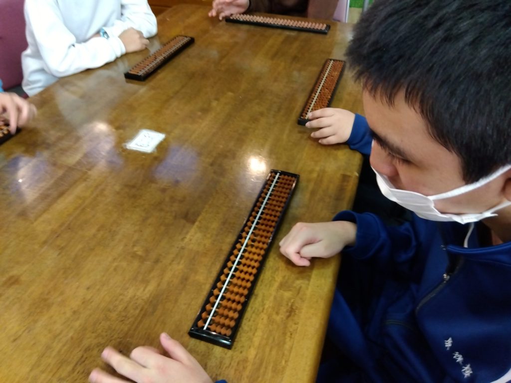 先週いなかった児童もいて、初めてという割には上手にそろばんで計算できていました。