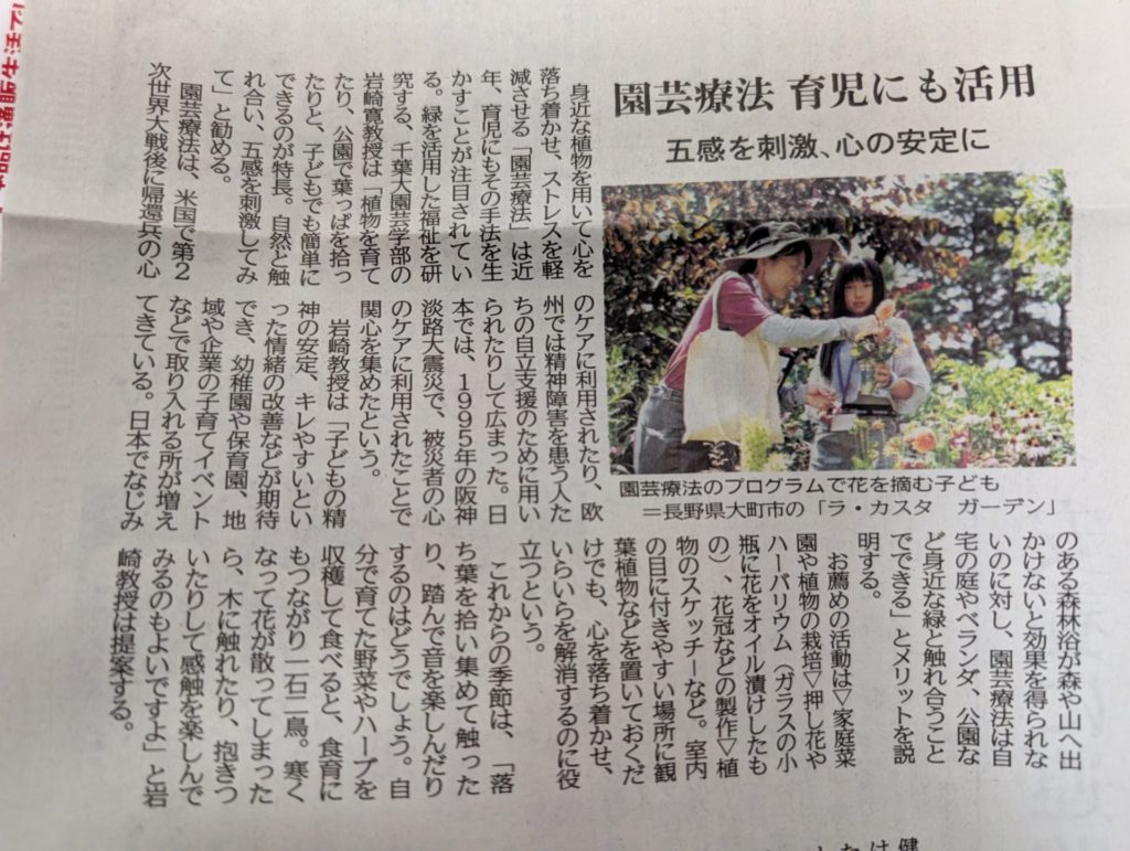 10月27日のD新聞に『園芸療法』の記事が載っていました📰