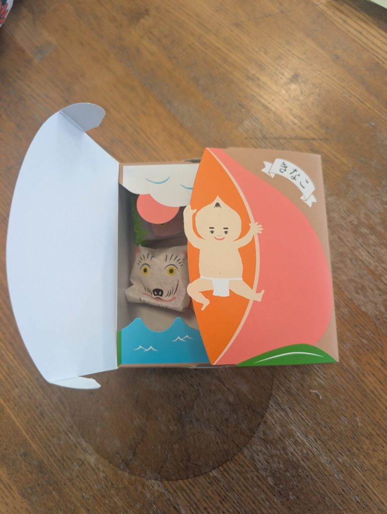 箱の片側を開けると桃から生まれた桃太郎が・・・