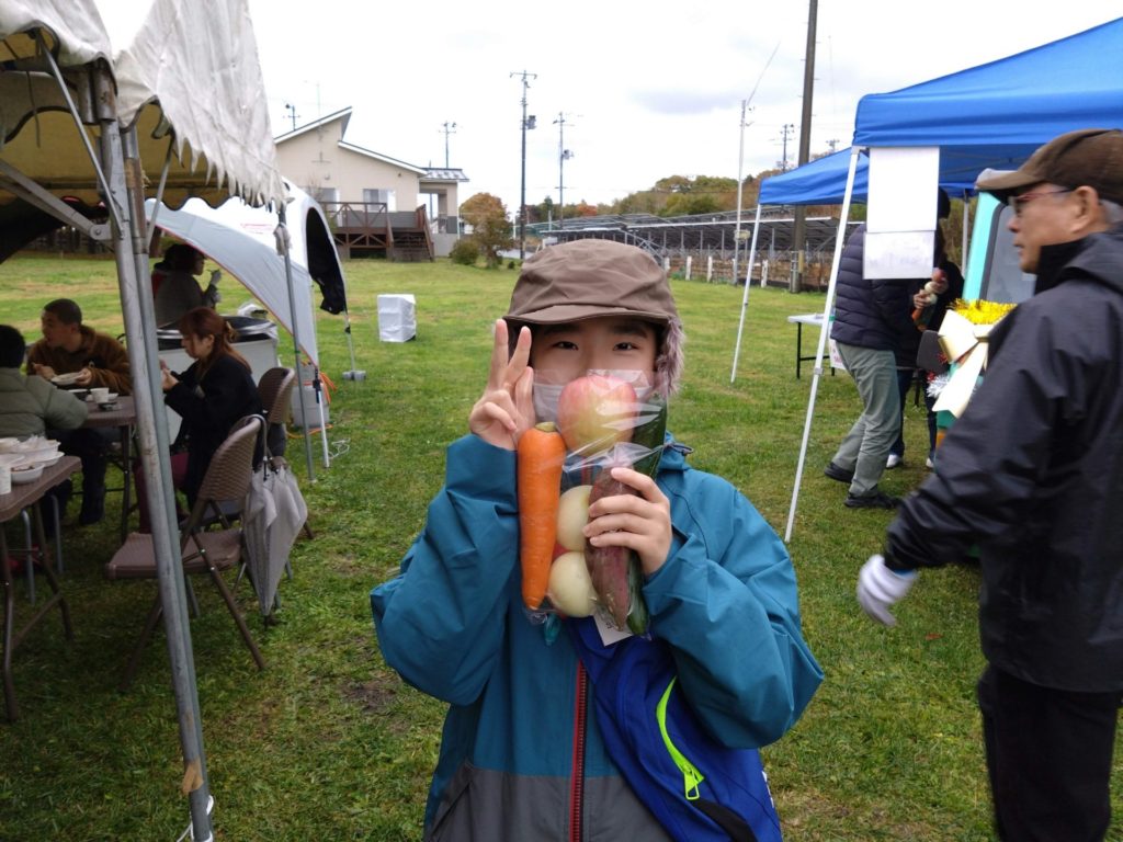 メインの芋煮や焼き肉、サンマの塩焼きなど美味しい食べ物の他に、野菜の詰め放題や長ネギ投げ、玉ねぎ転がし、○×クイズなど、色々楽しめるイベントでした。芋煮の野菜はユートピアの野菜をふんだんに使われていました🧅