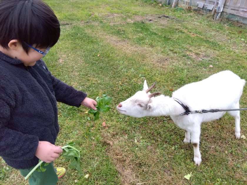 雨が降る予報だったので、降り出す前にと急いでにヤギに野菜をあげてきました🥬