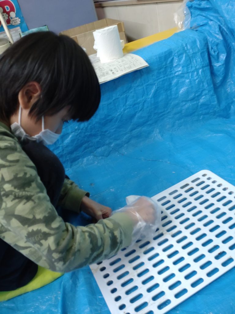◎3日目は、遊んでもらったお礼の気持ちを込めて、ぼんちゃんのゲ-ジをお掃除しています。