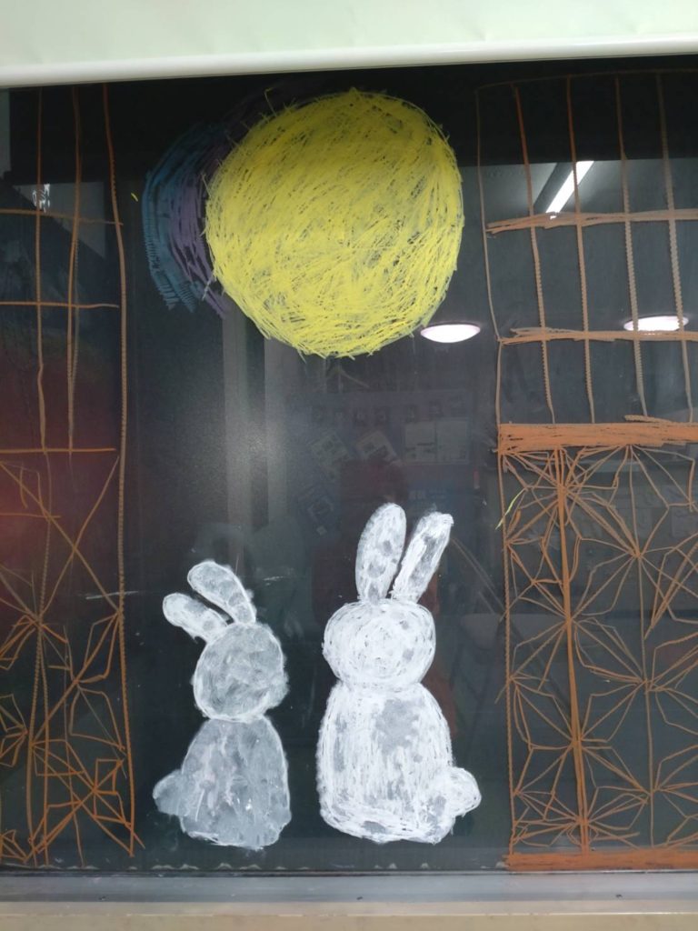 ★ウサギのお月見・・和風な感じを出したくて麻の葉模様の障子にしたそうデス