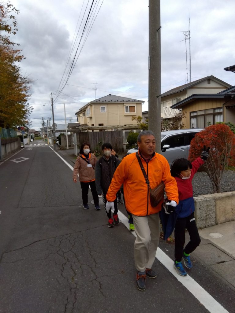 そして、8日土曜日、心地よい秋日和の中、避難訓練の一環としてぱぷりかの指定避難所となっている根城中学校への実地踏査及び徒歩による避難体験を行いました。