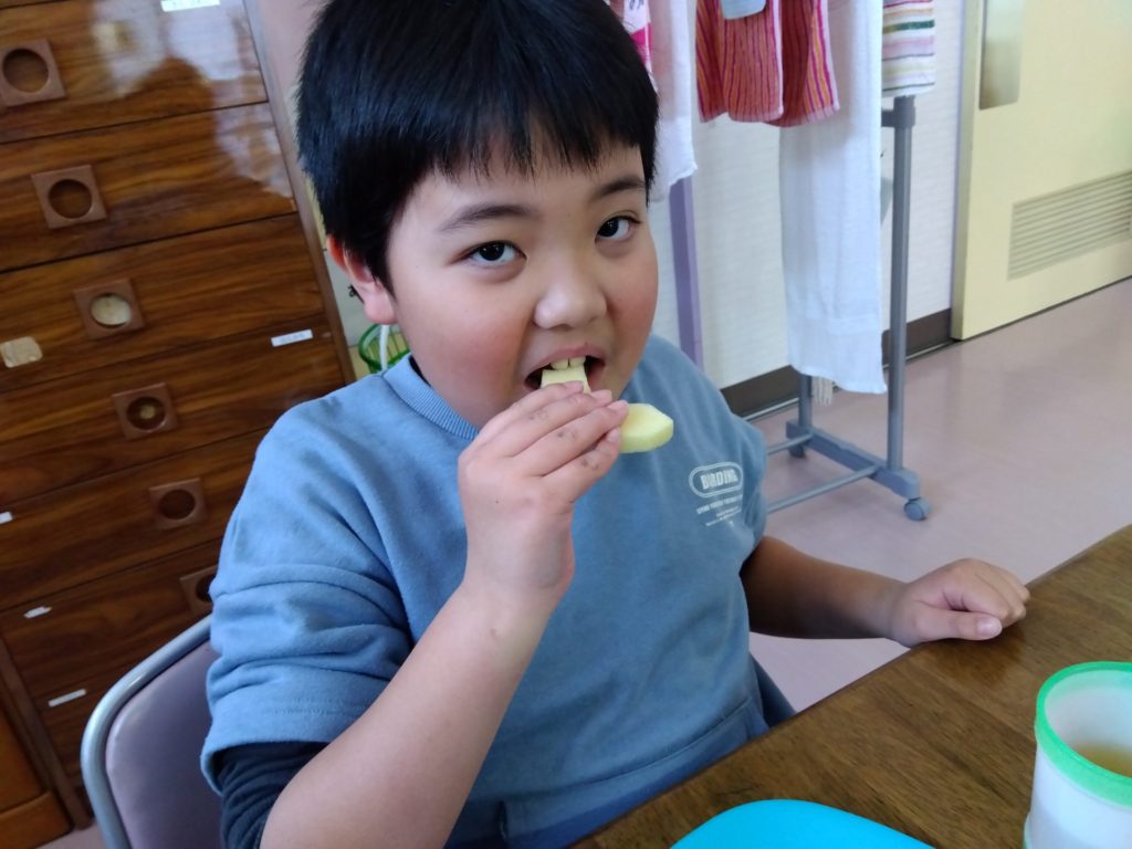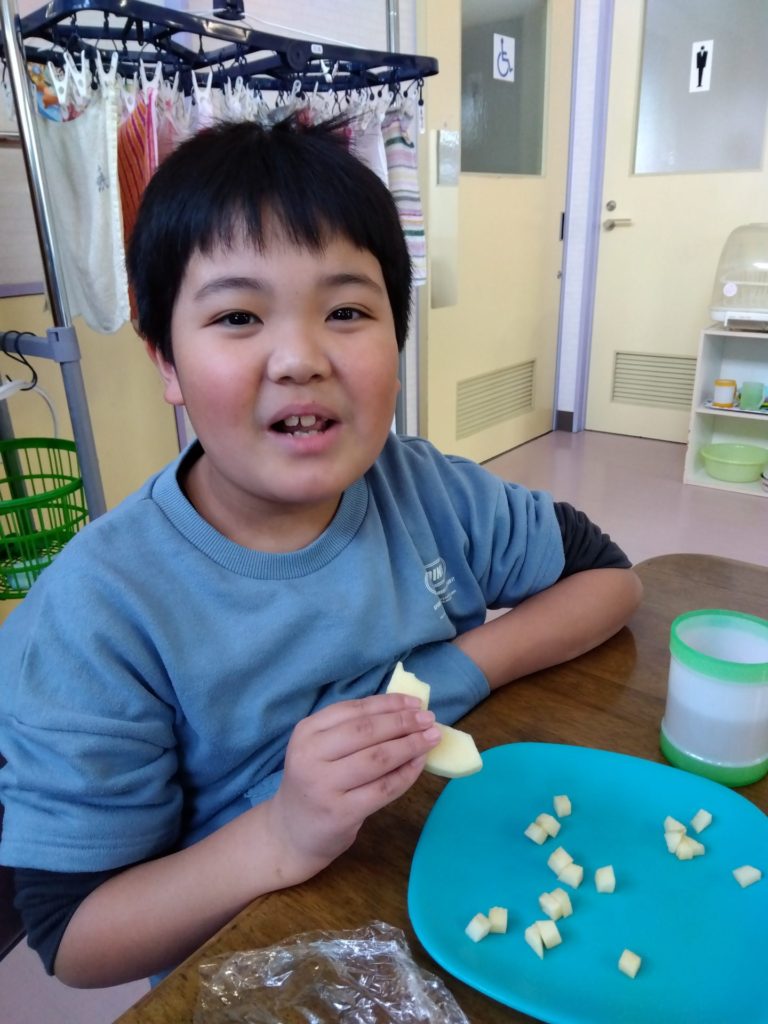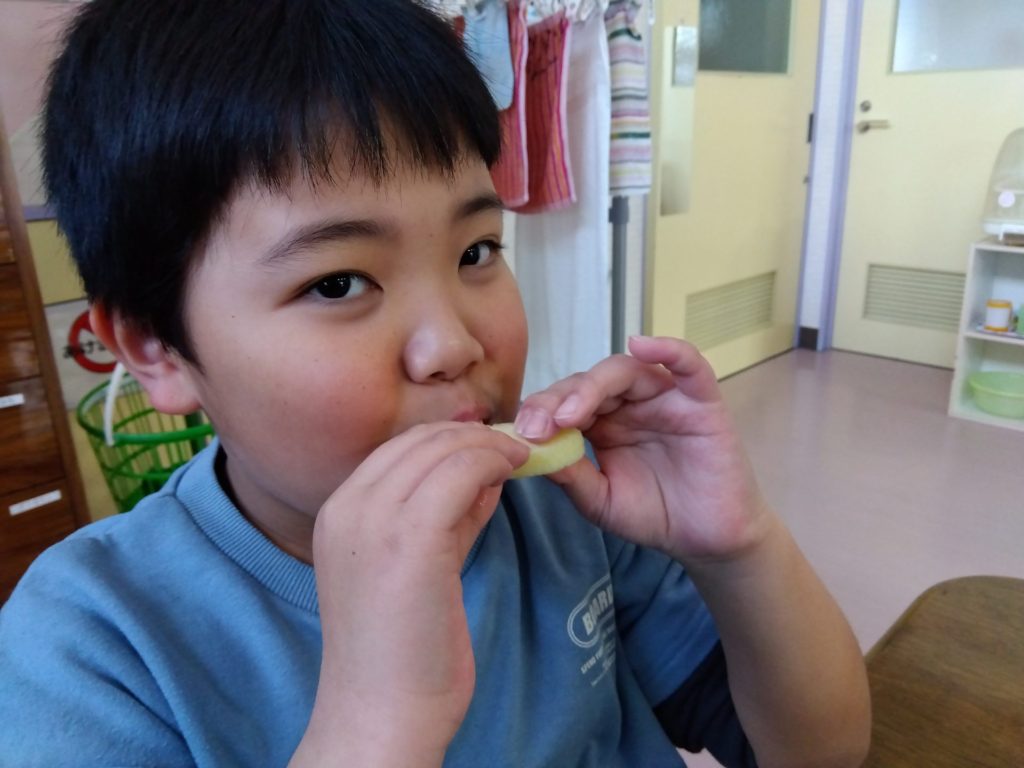 食べているではありませんか!!!「りんご、美味しい😊」と、Kさん!
