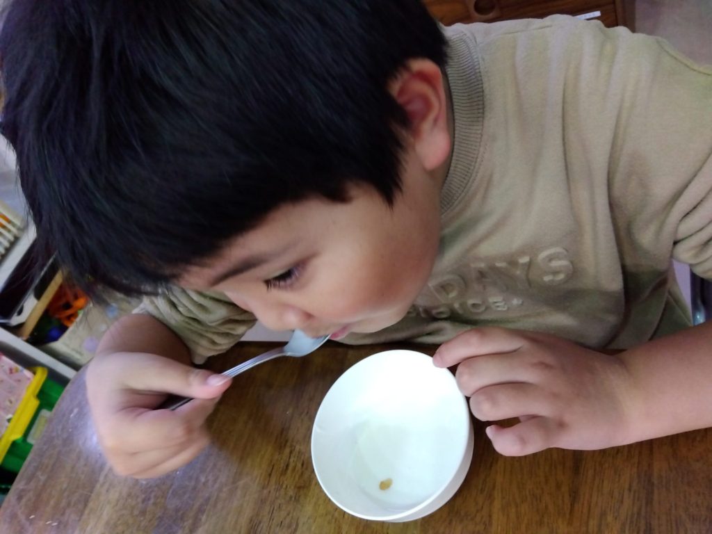 なんと・・・!自分でヨーグルトに入れて食べています😲すごい😲✨