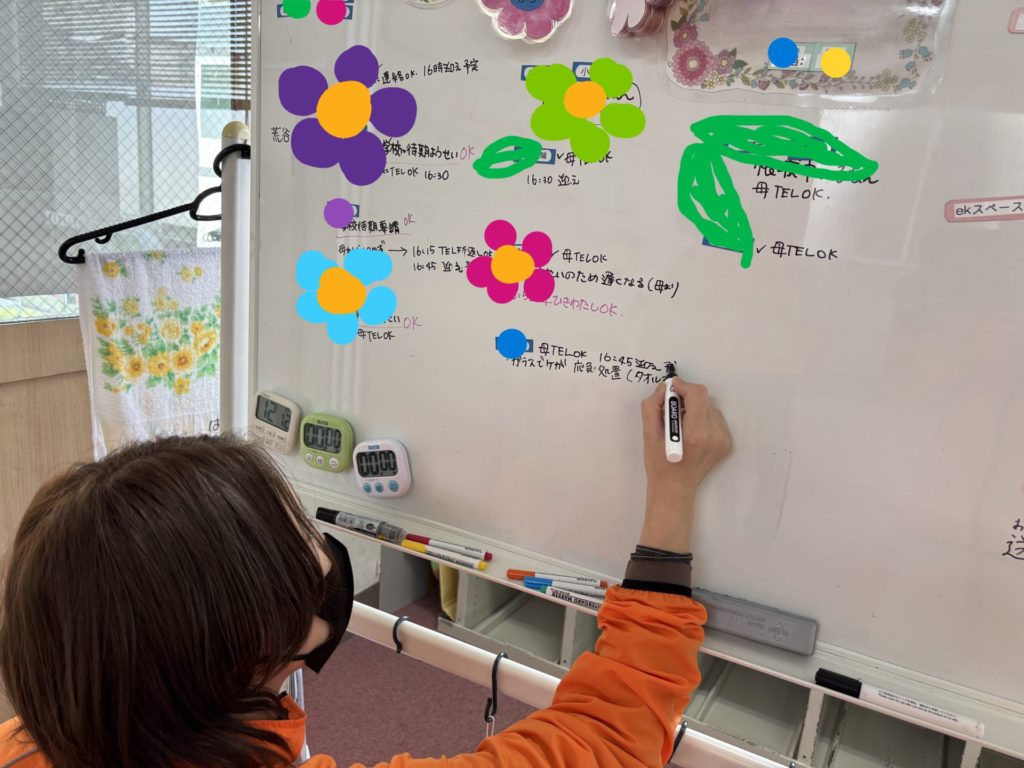 地震翌朝のスタッフ間の連絡網運用についても実際スムーズに行なうことができ、利用児童がまだ事業所に通所していない時間帯で建物の破損個所を確認し、建物の被害もほぼなかったということで、9日利用の児童から順に安否確認&利用確認を行い、全員に安否確認を行っていきました。安否確認シートを活用して一覧で名前を確認しながら漏れがないよう連絡を行い、本部、市役所への報告を行いました。