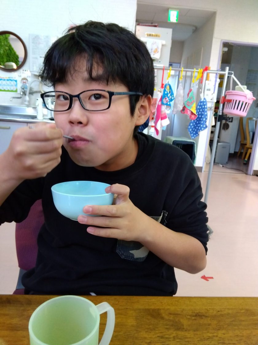 じっくり味わった後は姿勢を正して「ごちそうさまでした」のRさん😐