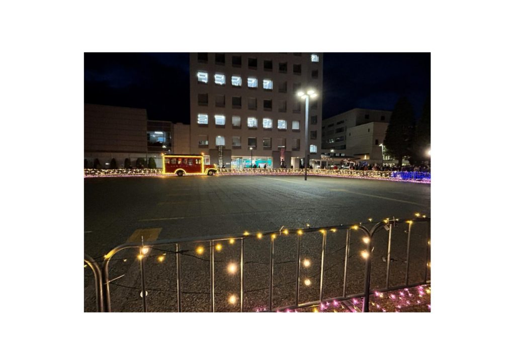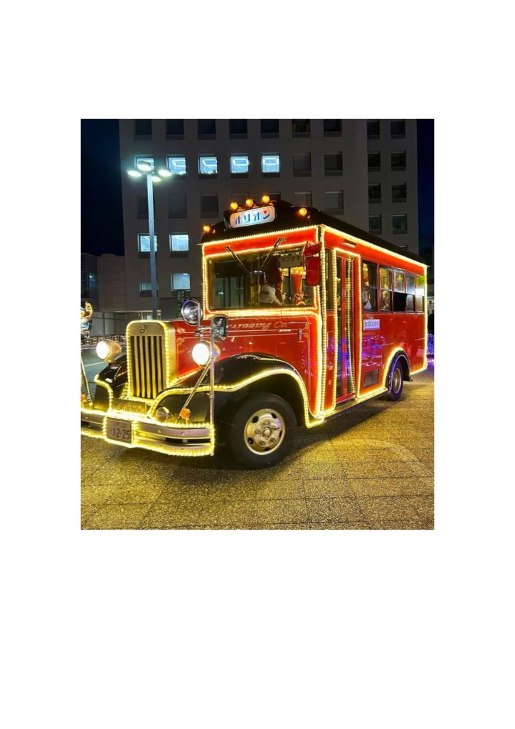 明るい時にはただ停まっているだけに見えた赤いボンネットバスが、サンタさん運転の特別サンタ号になってみんなを乗せて走っていました🚌