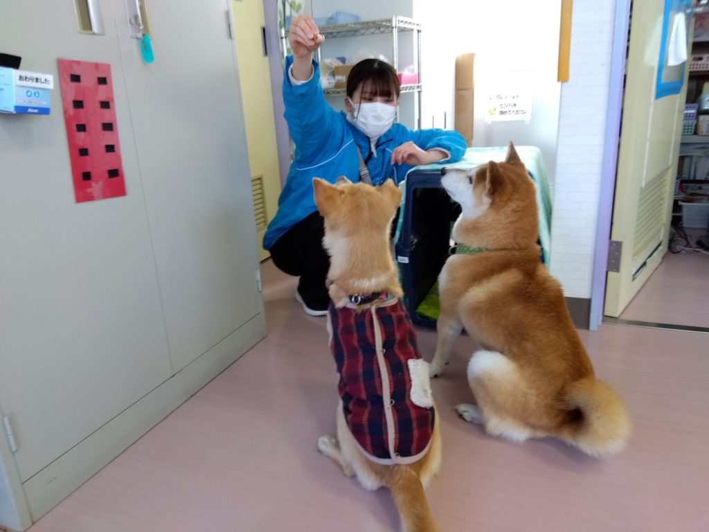 以前は待つことが苦手だったアキも、斗真のおすわりを見て学んだようです。背筋も伸びてきれいな”おすわり”ができるようになりました。