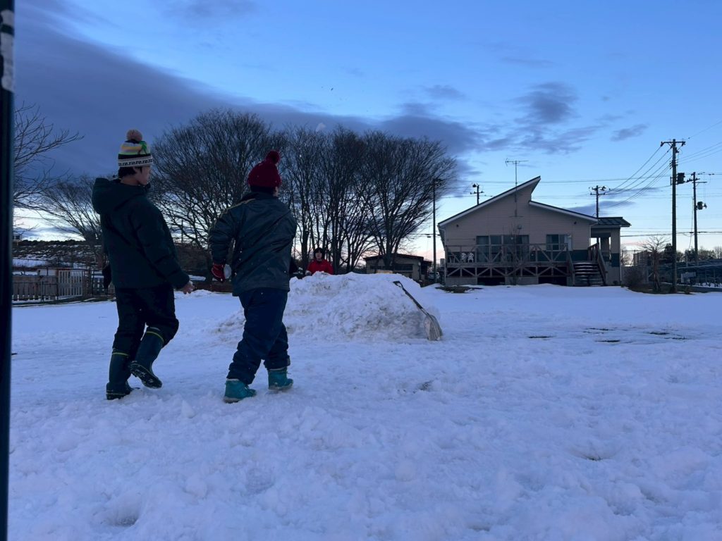 この日の気温は少し高めで、午後には雪だるまの耳が取れるほど暖かく雪遊びがしやすい気温でしたが、全力で遊ぶにはちょっと服や靴が濡れてしまいそうな服装や雪遊びにはかかせない手袋を「忘れてきた😢」と言う子も・・・ぜひ、子どもたちと一緒に「のあだより」を確認して、明日はどんな活動をするのかチェックしてみてくださいね😊✅