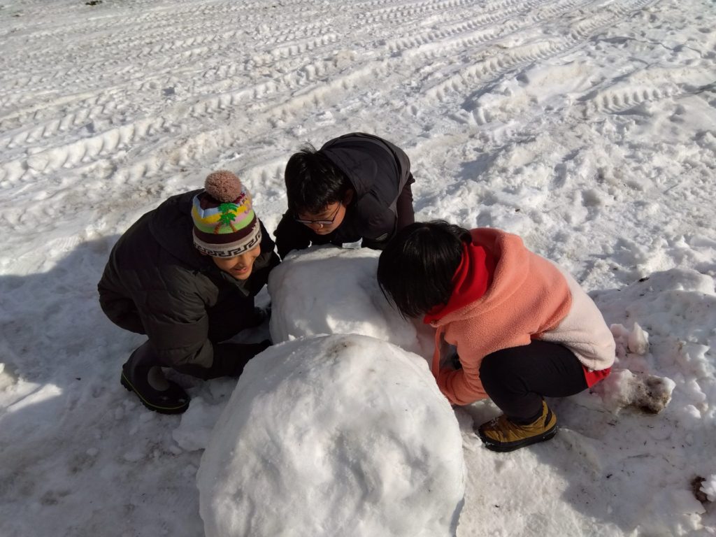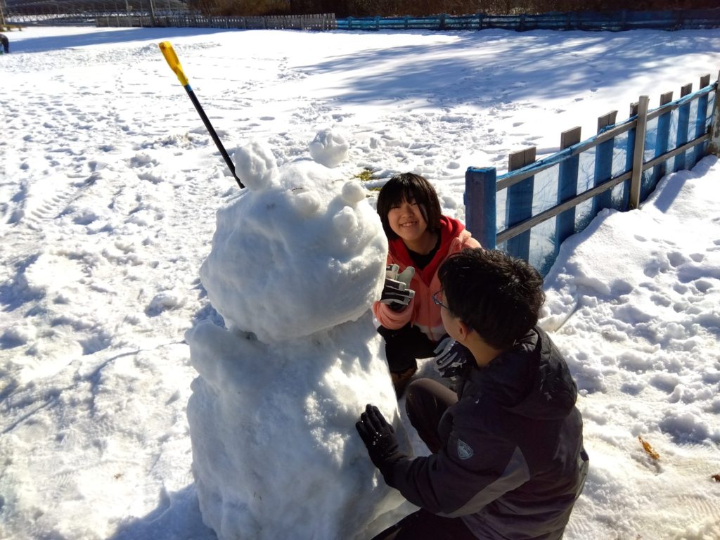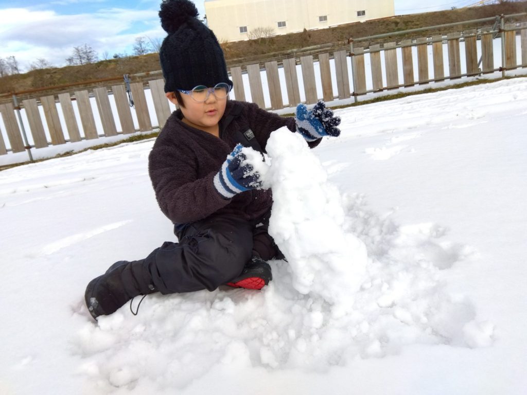 1人、2人、と増えてみんなで雪だるまを作りました⛄顔を持ち上げる時はみんなで力を合わせて頑張りました💪