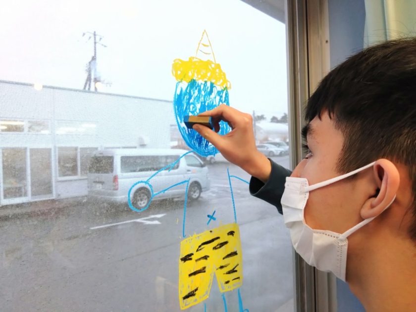 1月の色彩活動は、2月に向けて節分をテーマに窓に絵を描いていきます🎨