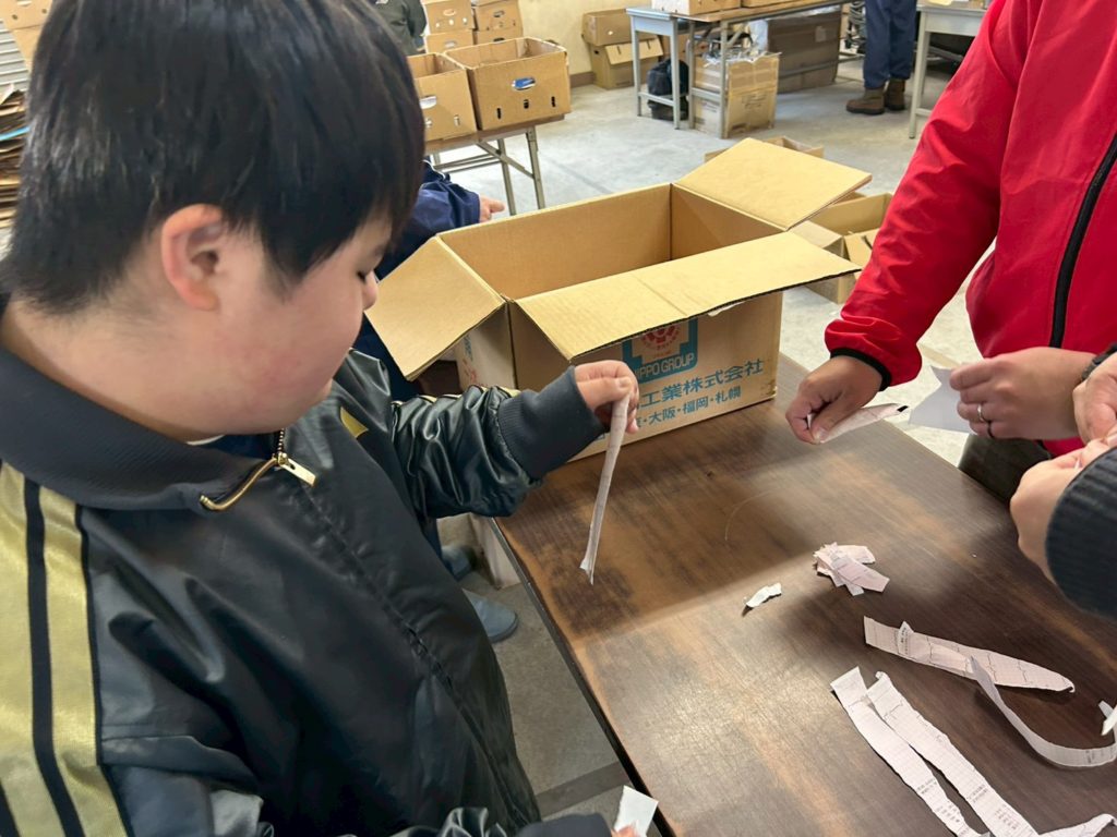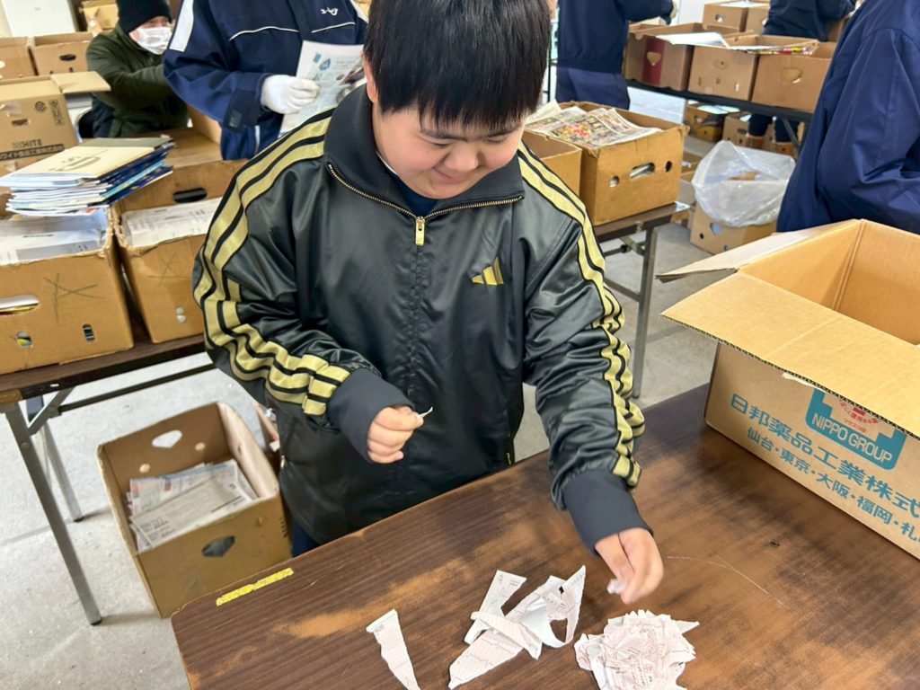 Sさんは、リヴェールのペーパーハウスで紙を細かく破く作業を行いました。
