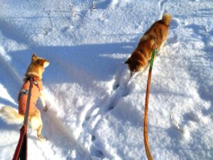 そして今。美保野界隈の散歩が出来るようになり、新雪の中に嬉しそうにトポトポ…と入っていく姿や、クンクンと何の匂いをキャッチしたのか、顔を雪の中に埋めての「クン活」が盛んです。