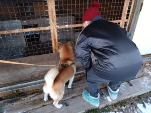 昨年の晩秋、熊目撃情報が美保野地区でもあり、安全面を考慮して〝まきば″内の散策という対策を取りました。兎・山羊との交流の中で、早く美保野内の散策が出来ますようにと願いながら散策を楽しむ2人。晴天の時は、子どもも一緒に散策を楽しみ、「あっ!!あんまり走らないで…」「そっちへ行かないよ…」等々、アキと斗真への優しい言葉がけが微笑ましく、まるで家族の散歩時のワンシーンです。