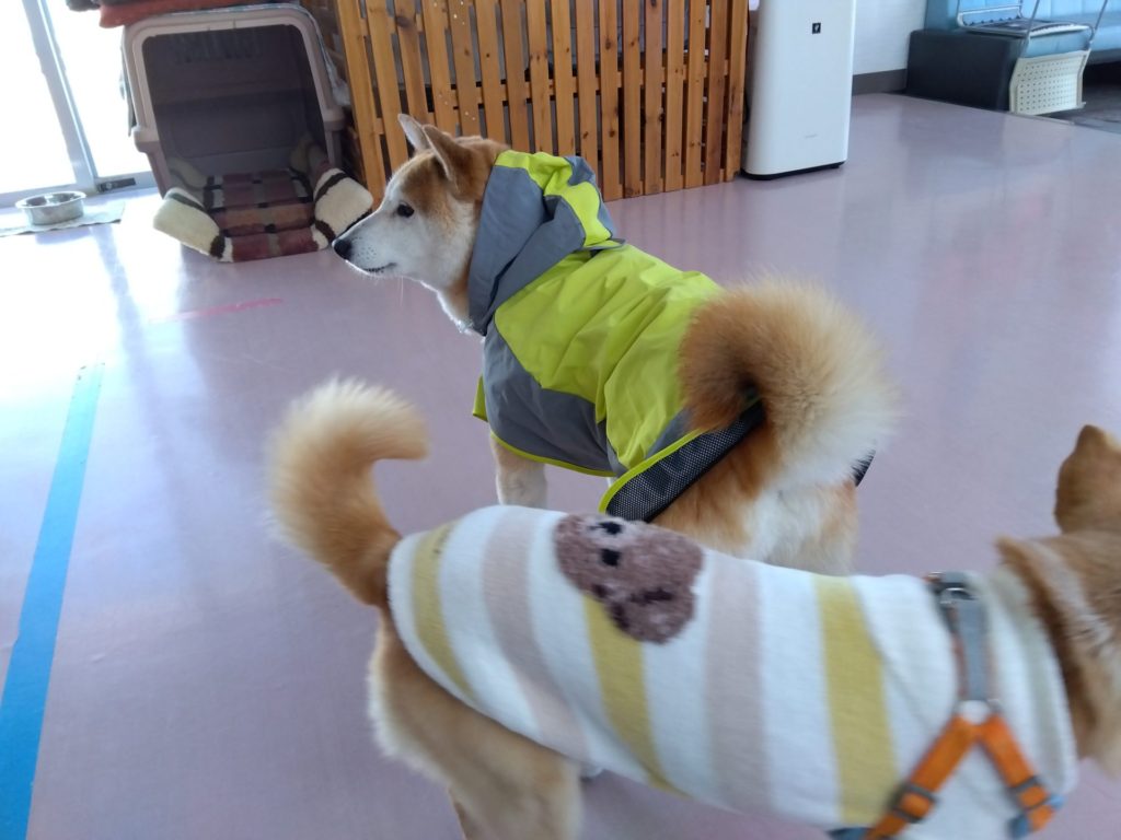 こんにちは、スタンプです。のあにいる犬のアキは最近寒いのでお洋服を着るようになりましたが、斗真はお洋服嫌いで、タオルをかぶせただけでも全身で動き回り振り落としてしまいます。
