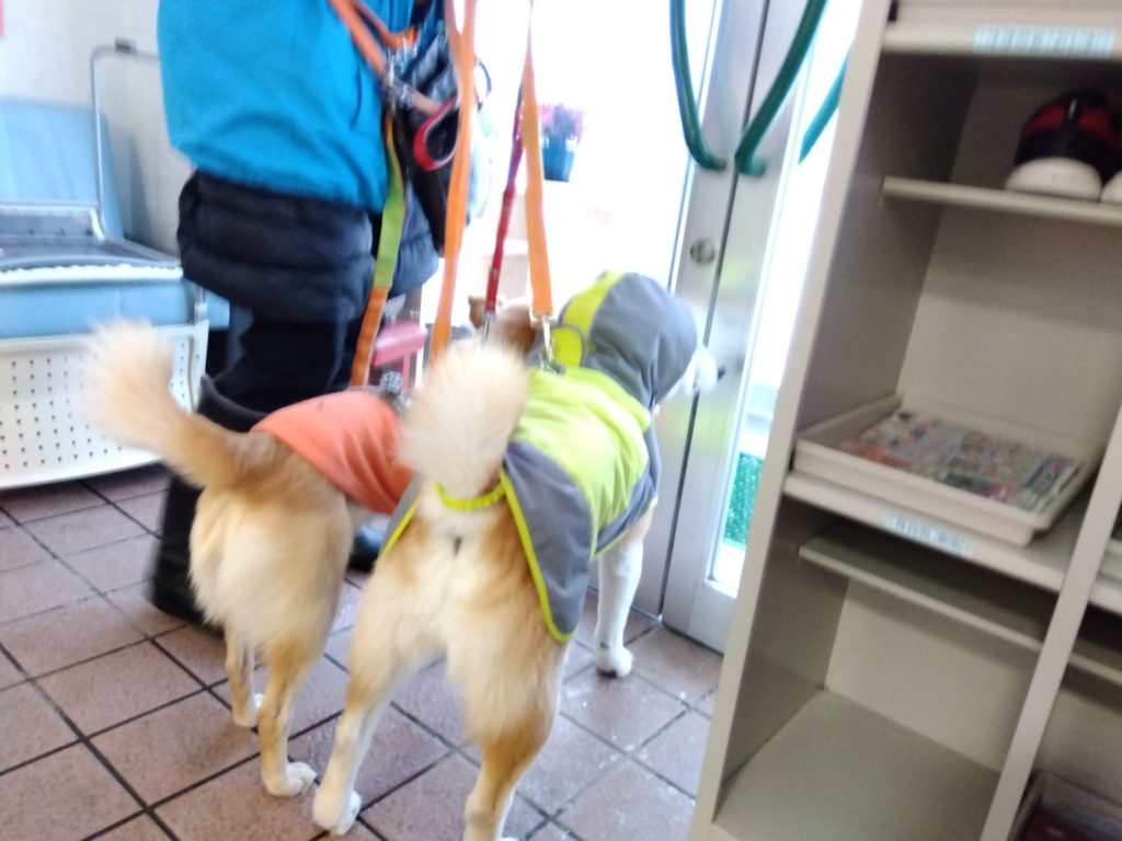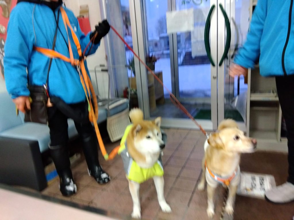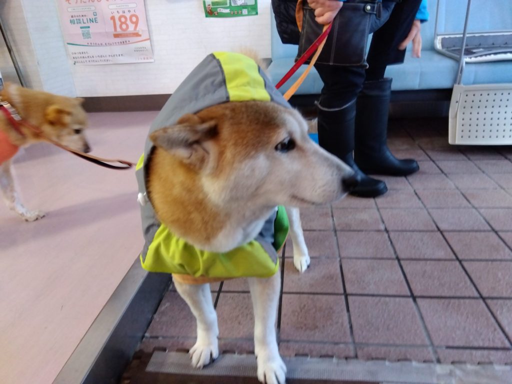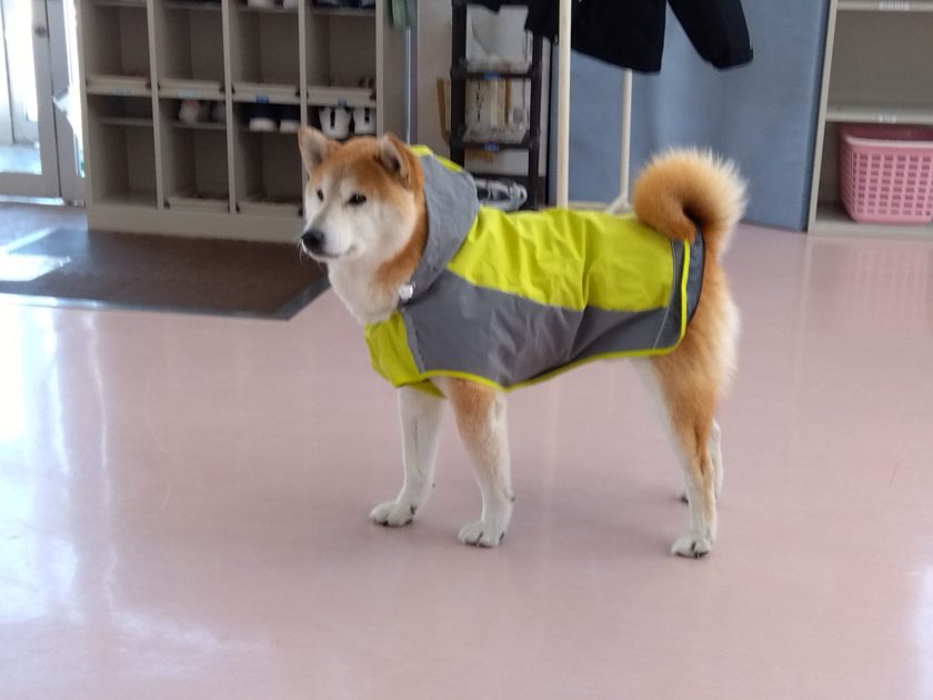 昨日と今日は、ちょうどお散歩の時間に雪が降っていたので、拒否もなくレインコートを着て散歩に行くことができました。