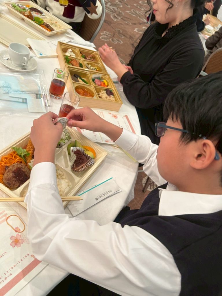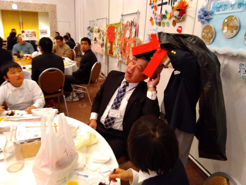 会場に入ると、なんと・・・鳥居が!!!そしてその鳥居をくぐってから席に着きます。なんだかおめでたいですね☺️この鳥居は、のあの子どもたちと一緒に作りました!上出来です🤭