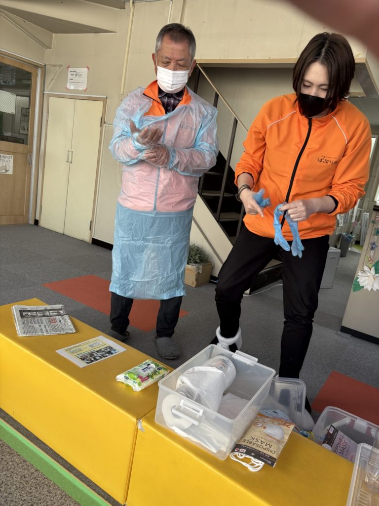 8月の感染症対策研修で学んだ「汚物処理に関する手順書」を参考にして実施しました。