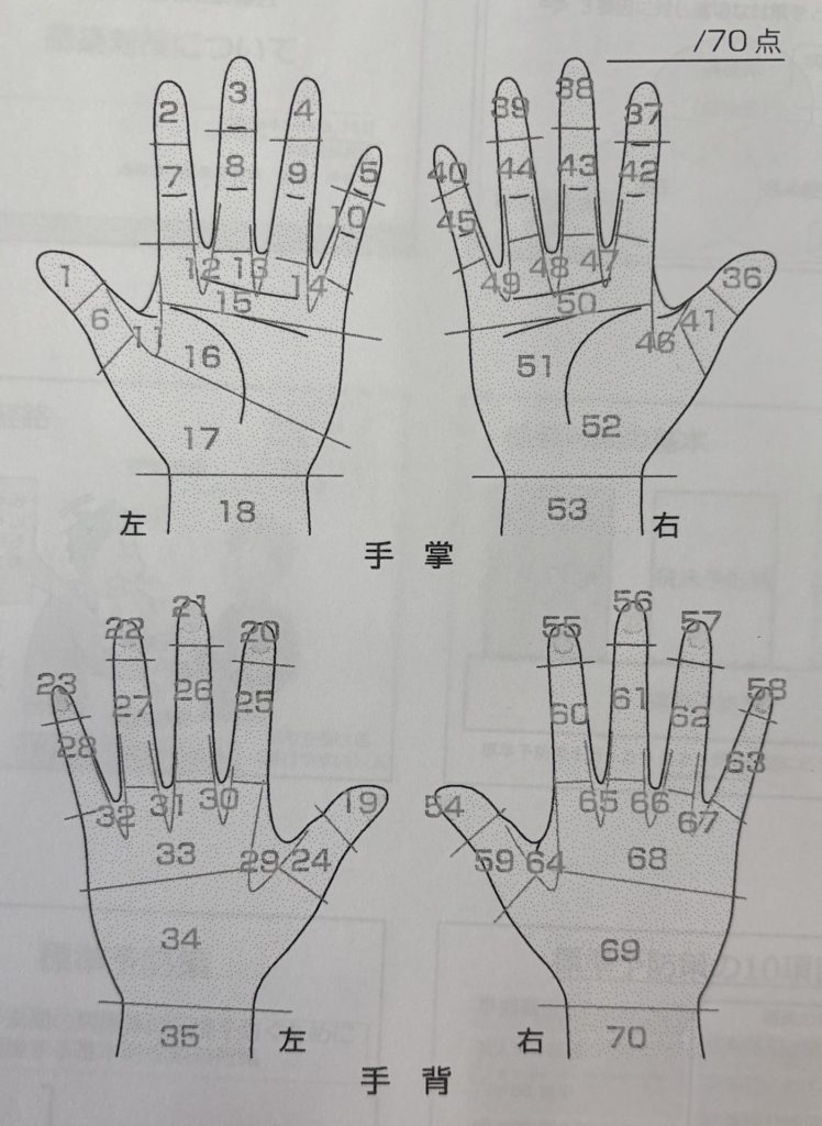もっとも洗い残しの多い部分(右写真の白い部分)→爪(19~23、54~58)