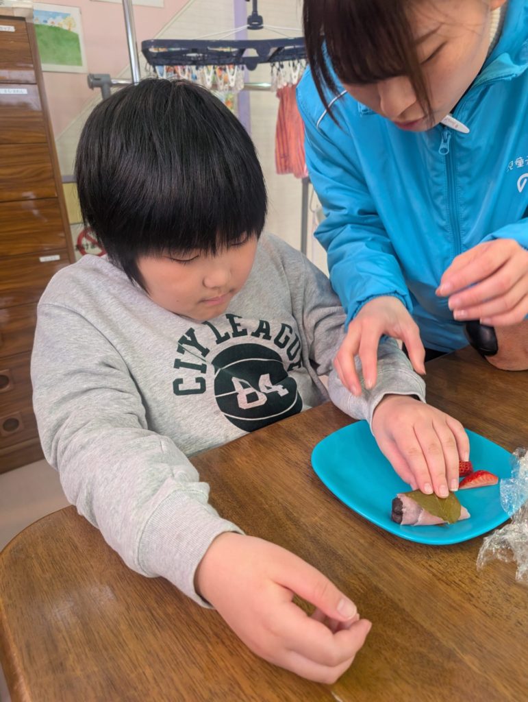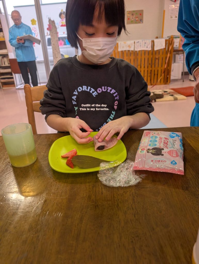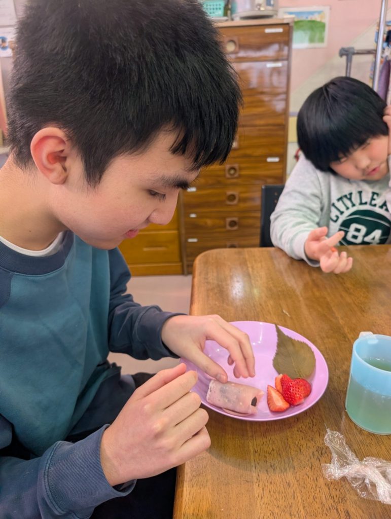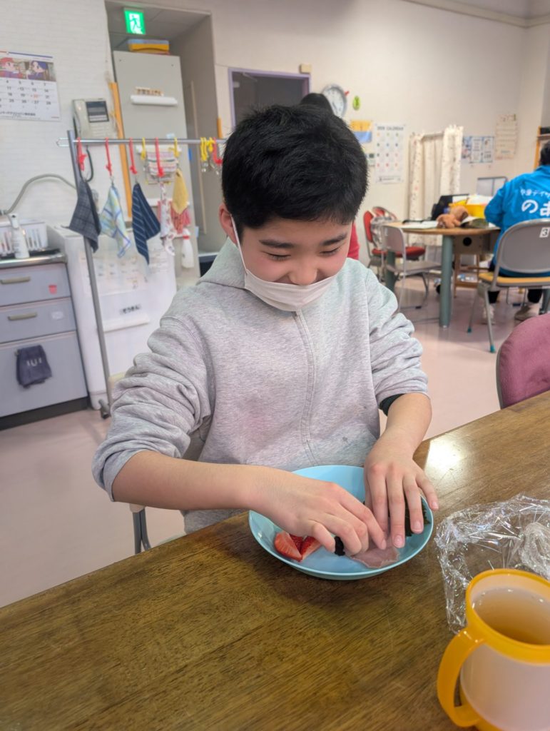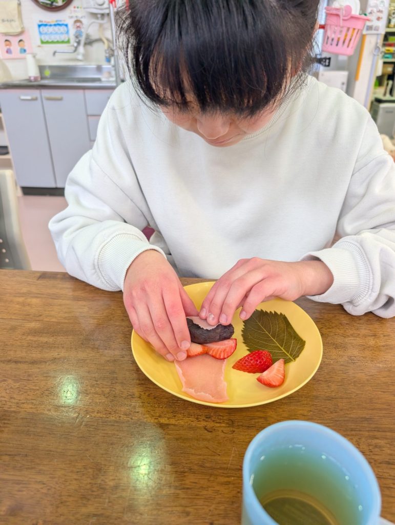 Sさんは🍓も一緒に巻いてこの笑顔😊 🍓落っこちそうだよ💦