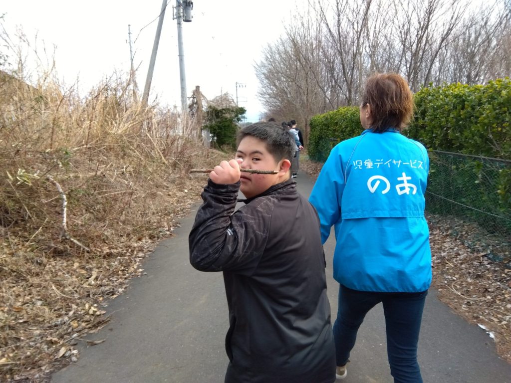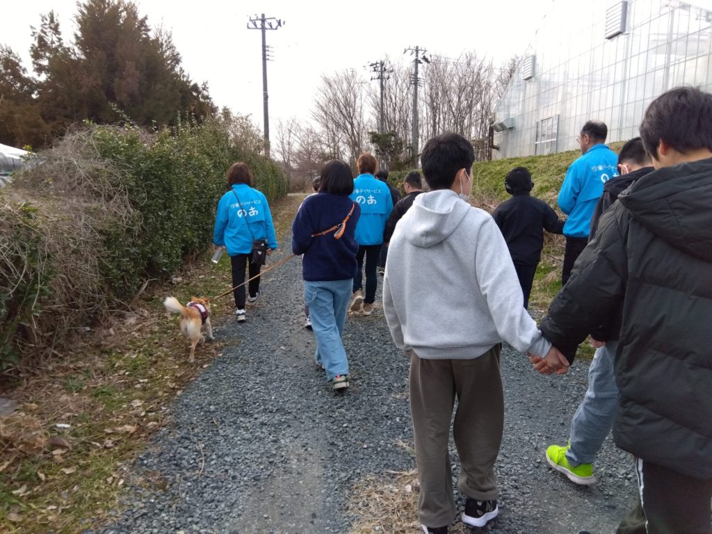 こんにちは、スタンプです。水曜日の療育活動では、みんなでのあの周辺をみんなでお散歩しました。もちろん、犬の斗真とアキも一緒です🐕