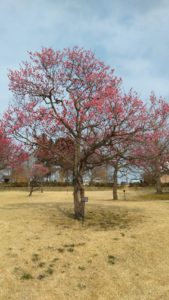 冬の間、外で遊ぶことが出来なかったので、芝生の上で大はしゃぎ‼サッカー、鬼ごっこなどでとっても元気。帰り際、梅の木に濃い桃色の花が咲き始めていました。