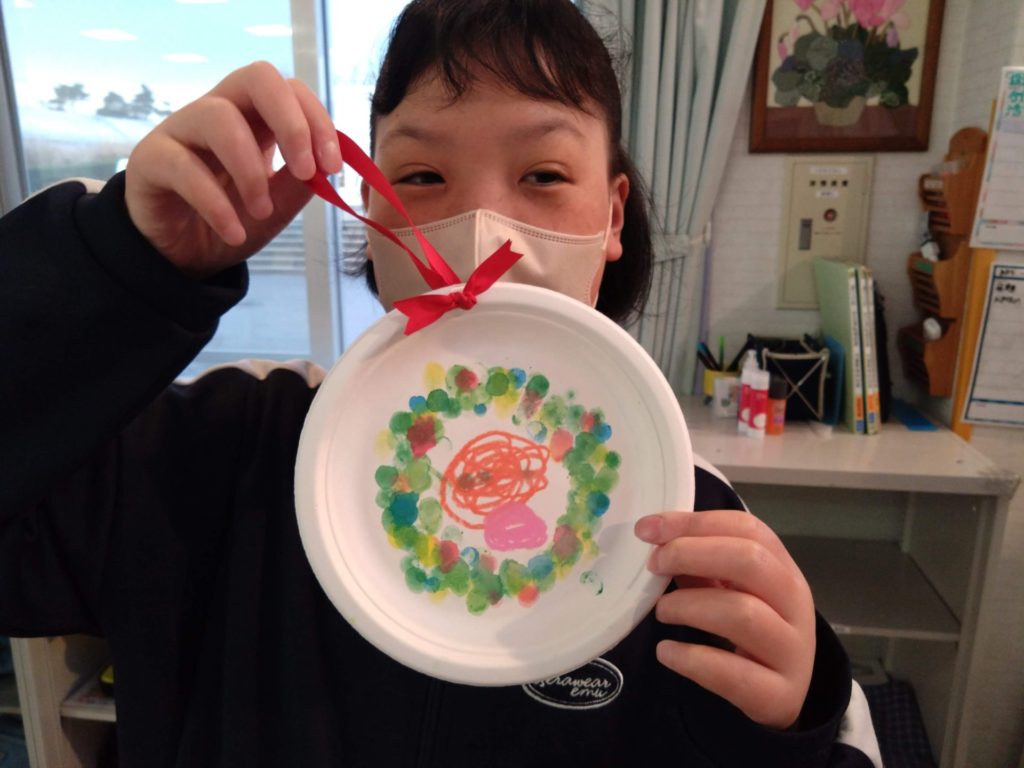 紙皿でリースも作りました⛄