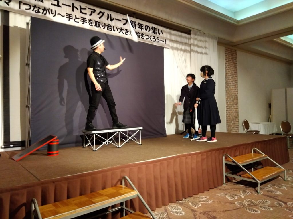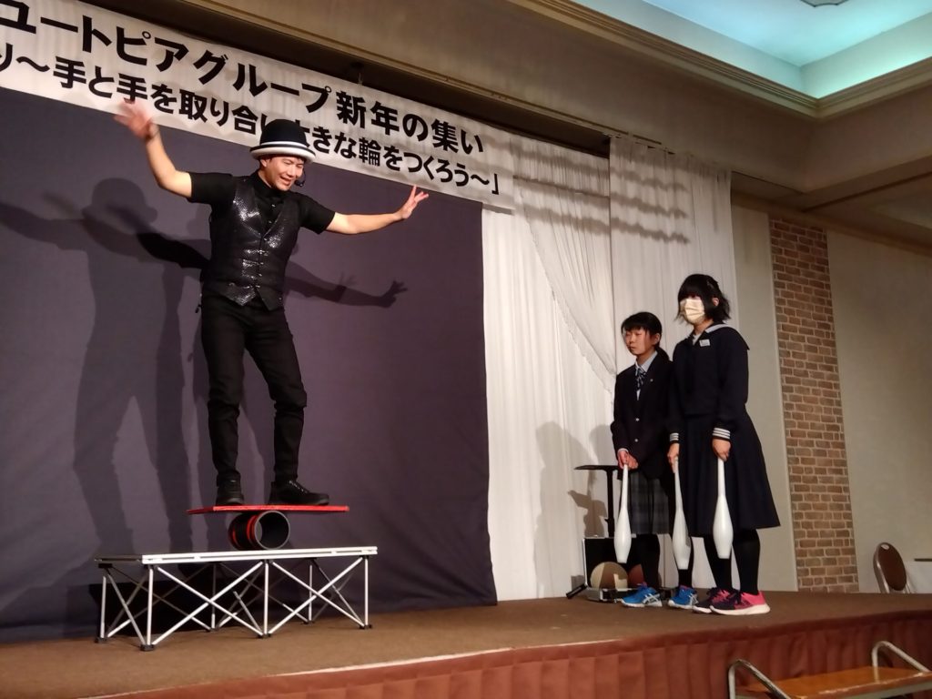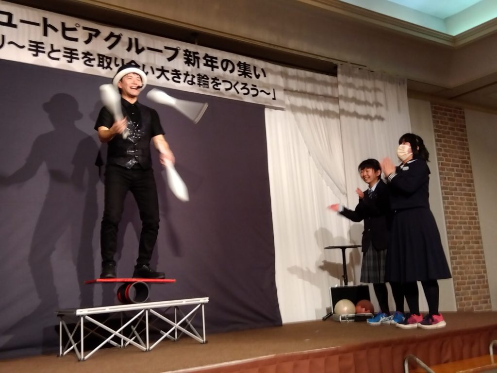24日に行われた新年の集いでは、ジャグリングパフォーマーATTOさんと一緒に、SさんとRさんがステージに上がって、ショーのお手伝いをしました😊