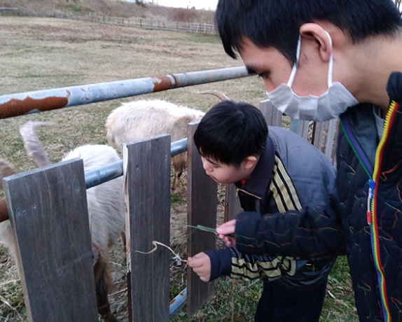 自然環境を活かした豊かで伸びやかな療育を行っています。障がいの特性に細やかな配慮をし、就労を念頭においたメリハリのある集団生活をサポートします。 敷地内には「まきば」があり、そこではヤギとウサギを飼育しており、こどもたちは動物とのふれあいができます。